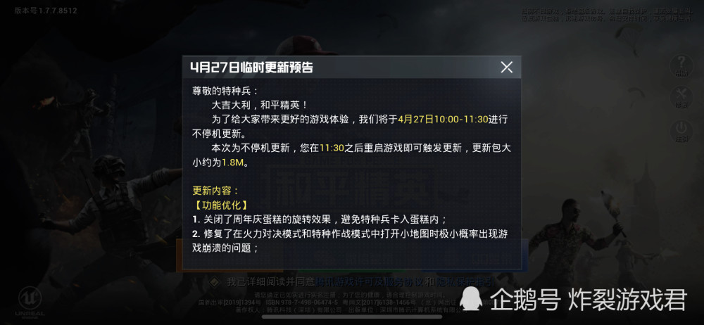 ÖÚËùÖÜÖª£¬¡¶ºÍƽ¾«Ó¢¡·SS6Èü¼¾½«»áÔÚ4ÔÂ28ÈÕÕýʽ½áÊø£¬ËùÒÔÔÚÀÏÍæ¼ÒµÄÓ¡ÏóÀ4ÔÂ28ÈÕ»áÓÀ´Èü¼¾½»ÌæµÄ¸üС£µ«ÊÇÈÃÌì¸çÓÐЩ³öºõÒâÁϵÄÊÂÇéÊÇ£¬4ÔÂ27ÈÕÓÎÏ·Àï¾¹³öÏÖÁ˽öÓÐ1.8MµÄ¡°Ð¡¸ü¡±£¬ËùÒÔÕâÓ¦¸ÃÊÇSS6Èü¼¾ÀïµÄ×îºó1´Î¸üÐÂÁË~ÖµµÃÒ»ÌáµÄÊÇ£¬´Ë´Î¡°Ð¡¸üС±²¢Ã»ÓÐÈκÎÕÚÕÚÑÚÑÚ£¬¹â×Ó´ó·½µÄÔÚÓÎÏ·Öз¢³öÁ˸üÐÂÔ¤¸æ£¬ËäÈ»½öÓÐ2¸ö¹¦ÄÜÓÅ»¯ÄÚÈÝ£¬È´×ãÒÔÓ°Ïìµ½°ÙÍòÍæ¼ÒÁË~