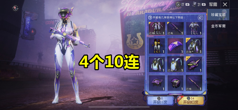 4¸ö10Á¬³é£ººÍƽ¾«Ó¢ÖÐ×î¾µäµÄÍæ·¨¾ÍÊÇ10Á¬³é£¬µ±Íæ¼Òµã»÷Íê¡°¿ªÆô10´Î¡±ºóÒ³ÃæÉϾͻáÆëˢˢµÄ³öÏÖ10¸ö¡°¾ªÏ²¡±£¬µ±È»ÓÐʱºò¾ªÏ²È·ÊµÊǾªÏ²£¬¶øÓÐʱºò¾ªÏ²»á±ä³É¾ªÏÅ¡£ÌìÆô¼ÍÔª¾üÐèÀ´ÁË£¬±¾´Î³é½±»î¶¯µÄÖн±ÂÊÔõôÑùÄØ£¿ÒÔÉÏͼÕâÎ»Íæ¼ÒΪÀý£¬Ëû4¸ö10Á¬³éÄõ½ÁËÌìÆô¼ÍÔªÌ××°£¬AKMƤ·ô£¬1¼¶±³°üƤ·ô£¬3¼¶±³°üƤ·ô£¬ö±µ¯Ç¹Æ¤·ô¡£ÕûÌåÀ´¿´£¬ÕâÎ»Íæ¼ÒÒ²ËãÊÇÔËÆø·Ç³£ºÃµÄÄÇÖÖÁË¡£²»¹ý£¬ÔÚ±¾´Î¾üÐè»î¶¯ÖÐÀàËÆµÄÍæ¼Ò²¢²»ÔÚÉÙÊý£¬ËùÒÔÎÒ¸öÈËÈÏΪÕâ´Î¾üÐèµÄÖн±ÂÊ¿ÉÄܱȹúÍõ¾üÐè¸ßһЩ¡£