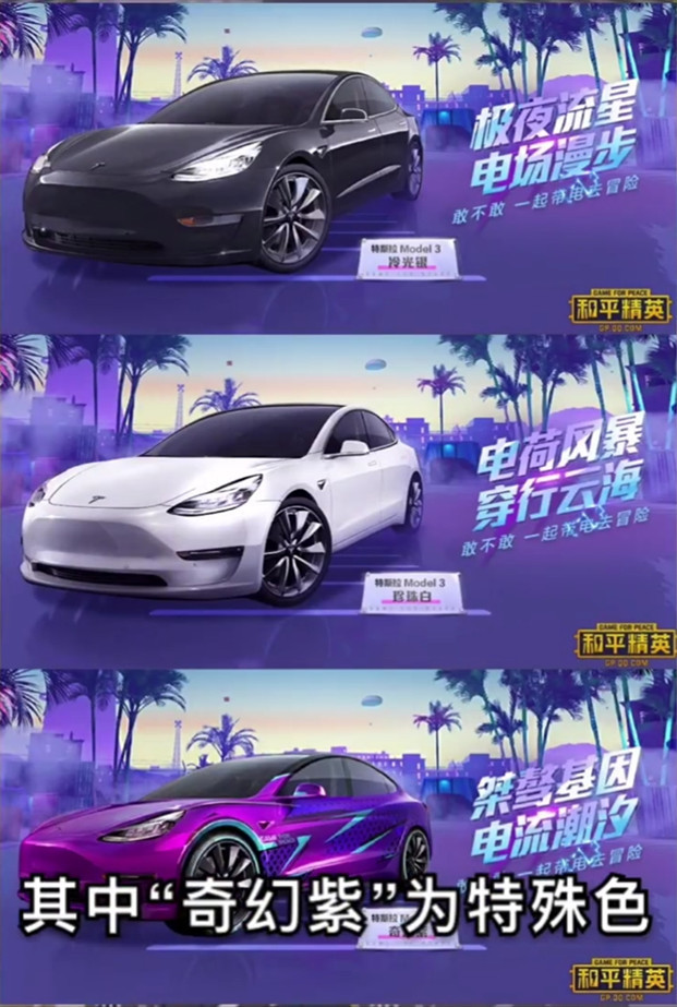 说到这里,我相信很多玩家都知道,这次的载具皮肤特斯拉和玛莎拉蒂的稀有度相似,而且不同的颜色也是有着不同的定位。玛莎拉蒂在当时的价格为六千点劵,所以这次的冷光银和珍珠白特斯拉皮肤也是差不多的价格,而奇幻紫的价格很大几率会和金色玛莎拉蒂相同。不过特斯拉以亲民为主,所以价格上可能会很良心。