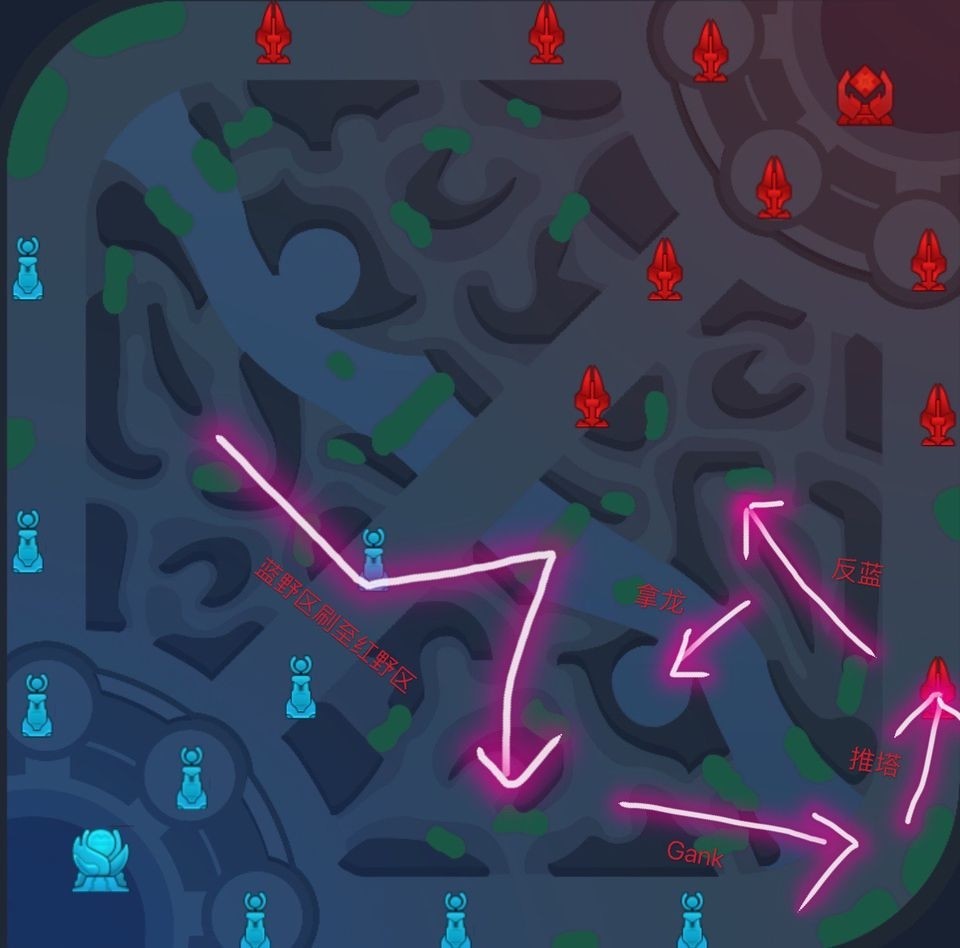 ÕâÊÇÒ»Ì×ÍêÕû¶øÀíÏëµÄ´òҰ˼·£¬¾ÍÊÇͨ¹ýGank¡¢ÍÆËþ´ò³öÓÅÊÆ£¬Ñ¹Í˵ÐÈË£¬¼Ì¶ø·´µÐ·½À¶Buff£¬È»ºóÄÃÁú£¬ÔÙË¢×Ô¼ÒÒ°£¬Gank¡¢ÍƽøÁíÒ»Ìõ·£¬¼ÌÐø¿ØÒ°ÄÃÁú£¬ÐγÉÒ»¸öÁ¼ÐÔµÄÑ»·¡£È»¶ø£¬ÒªÏë¸üºÃµÄÍê³ÉÕâÒ»Á÷³Ì£¬¾Í񻃾¼°ÒÔϵÚÈýµã¡£