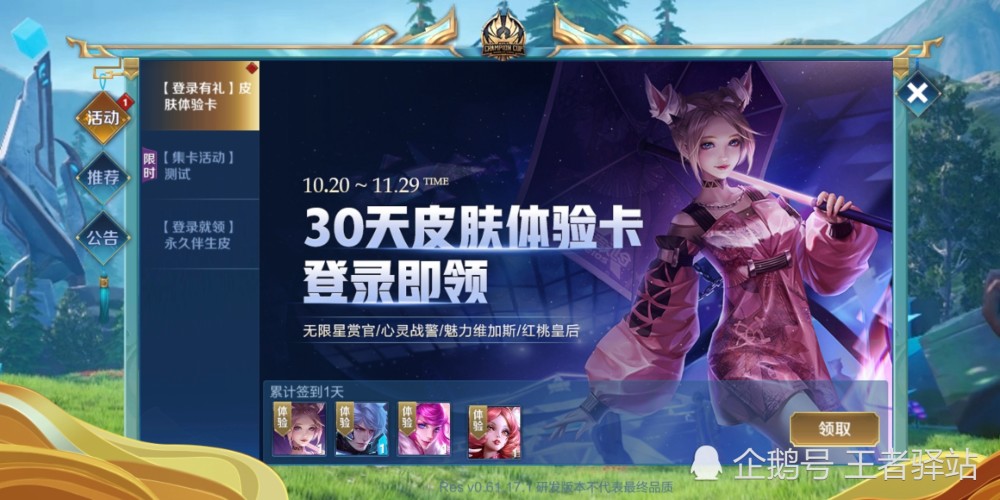 ×îºóÎÒÃÇÔÙÀ´¿´¿´ÌåÑé·þ¸£ÀûÉý¼¶µÄÏûÏ¢£¬ÎªÁËÈøü¶àÍæ¼Ò²ÎÓëµ½ÌåÑé·þµÄ²âÊÔÖÐÀ´£¬±ÈÈçÌåÑé×îÐÂÓ¢ÐÛ¡¢Ï¿¹È×ۺϱ䶯¡¢ÐÂģʽµÈ£¬¹Ù·½²»½ö½«ÌåÑé·þµÄÉêÇëʱ¼ä¸ü¸ÄΪÿÈÕ¿ª·Å£¬ÔÚ11ÔÂ29ºÅ֮ǰËùÓÐÍæ¼ÒµÇ¼ÌåÑé·þ»¹ÄÜÁìÈ¡¹«ËïÀëÎÞÏÞÐÇÉ͹١¢ÑÇɪÐÄÁéÕ½¾¯¡¢ØÂÔºìÌÒ»Êºó¡¢æ§¼º÷ÈÁ¦Î¬¼Ó˹ËÄ¿îÓÂÕß/ʷʫƤ·ô£¬Èô¶ÔÕâЩƤ·ô¸ÐÐËȤµÄÍæ¼Ò¿ÉÒÔ½øÈëÌåÑé·þÊÔÍæ¸ÐÊÜһϣ¡