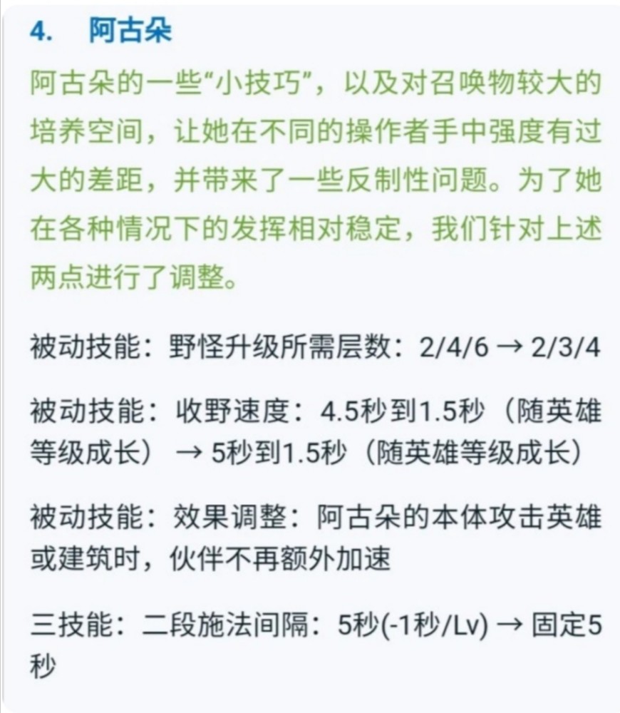 但是削弱了前期收野速度而且砍了被动加速和大招的施法间隔。这次把野怪层数又回调了。阿骨朵又被策划砍了一刀。