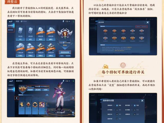 上次给大家聊过峡谷特效升级,也就是画质会更好。而这次天美又透露会翻新地图,并且从官方展示的图片来看,这次优化效果还是非常不错。尤其是新峡谷宣传片简直给人一种仙境的感觉,比如草丛更加逼真了,龙坑附近色彩更加艳丽了。同时,贵族系统也优化了。查看积分、特权等很方便,还有特殊权利可以自定义开启或关闭。比如v10不想开启皮肤共享,那么好友就无法使用你拥有的皮肤了。
