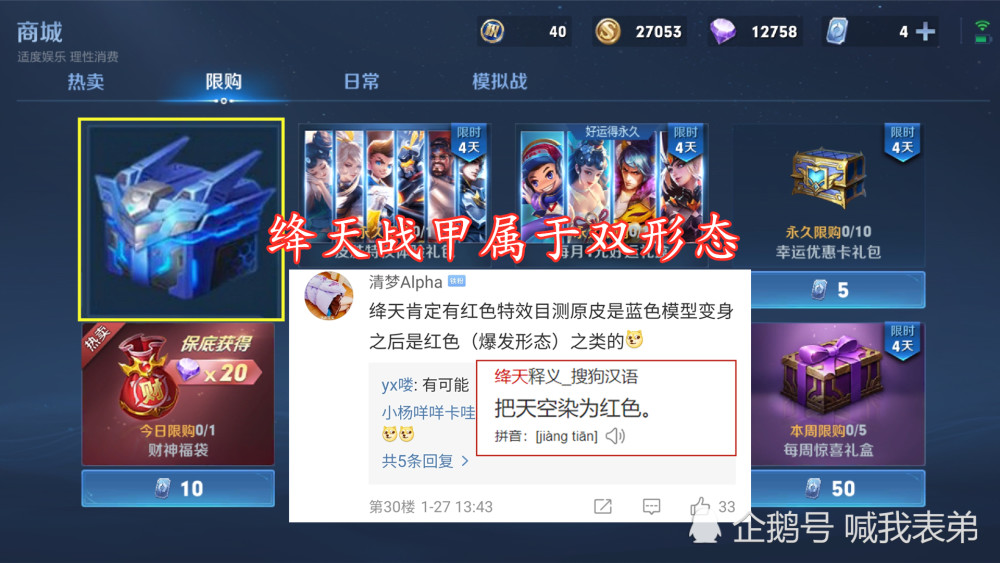 ³ýÁ˸ú¹«ËïÀëÆ¤·ôÓйصÄÄÚÈÝÖ®Í⣬»¹ÓоÍÊÇ£¬ÔÚÏÂÖܹٷ½½«»áÉÏÏßÒ»¿îеĴ«ËµÆ·ÖÊÆ¤·ô£¬Æ¤·ôµÄ¹éÊô¸øµ½ÁËîø¡£²¢ÇÒ¸ù¾ÝÕâ¿îƤ·ôµÄÆØ¹âÄÚÈÝÀ´¿´£¬îøµÄÐÂÆ¤·ô½«»áÃüÃûΪ¡°çÌìÕ½¼×¡±£¬¶øÇÒÊÇÒ»¿îË«ÐÎ̬µÄƤ·ô¡£