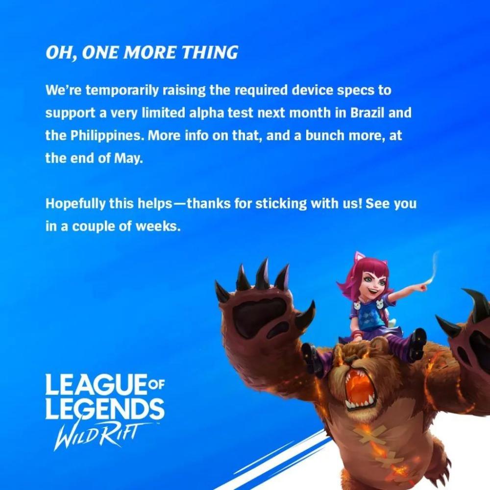 ¹ÙÍÆÒ²ÔÚÍÆÌØÉϹ«²¼ÁËÓÎÏ·µÄÅäÖÃÐèÇó£¬ÒÔ¼°Ó¢ÐÛÁªÃËÊÖÓÎÏÞÁ¿Alpha²âÊÔ½«ÓÚϸöÔÂÔÚ°ÍÎ÷ºÍ·ÆÂɱöÁ½¸ö·þÎñÆ÷½øÐеÄÏûÏ¢¡£