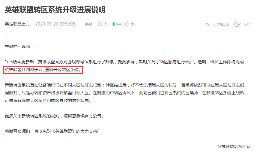 ´Ó¹«¸æÖÐÎÒÃÇ¿ÉÒÔ¿´µ½ÒÔÏÂÖØÒªÐÅÏ¢£ºµÚÒ»µã£¬×ªÇøÏµÍ³¿ª·Åʱ¼ä±»È·¶¨ÔÚÁË7Ô·ݡ£ÔÚ¸üÔç֮ǰ£¬¾ÍÓÐÐí¶àÓÎÏ·Íæ¼Ò·×·×ºôÓõÖØÐ¿ª·Å×ªÇøÏµÍ³£¬µ«È´Ò»Ö±Ã»Óеõ½»ØÓ¦¡£Õâ´Î¹ÙÍøµÄ׼ȷ¶¨Ê±£¬ÎÞÒÉÊÇÈÃÍæ¼ÒÃÇ·ÅÐĶàÁË¡£µÚ¶þµã£¬×ªÇøµÄ¹æÔòÒ²ÓÐÁËһЩ¸Ä±ä¡£Ïà½ÏÓÚÒÔǰµÄ×ªÇøÏµÍ³»á¶³½áǰһ¸öÕ˺ÅÀ´Ëµ£¬Õâ¸öа汾µÄ¹æÔòÏԵøü¼ÓÈËÐÔ»¯ÁË¡£³ý´ËÖ®Í⣬аæ×ªÇøÏµÍ³ÉÏÏßÖ®ºó£¬»¹¿ÉÒÔÉêÇë½â³ýÒÔǰ±»¶³½áµÄÕ˺š£