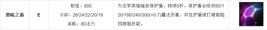 E¼¼ÄÜ£ººÚ°µÖ®¶Ü¡£Îª¶ÓÓÑÌṩ±£»¤¶Ü£¬¸Ã»¤¶Ü»áÎüÊÕħ·¨É˺¦£¬³ÖÐø5Ã룬²¢ÔÚ»¤¶Üδ´òÆÆÖ®Ç°×èµ²Ò»ÇÐÏÞÖÆ¼¼ÄÜ¡£ÔÚ¡°Äª¸ÊÄȼÓŮ̹¡±×éºÏÖУ¬Å®Ì¹E¼¼Äܳ£×÷ΪÏÈÊÖ¼¼ÄÜ£¬¶øÍ»½øµÄŮ̹ºÜÈÝÒ×±»µÐ·½Ó¢ÐÛËù¿ØÖƺͼ¯»ð£¬²»¹ýÓÐÁËΏÊÄÈE»¤¶ÜµÄ±£»¤£¬Å®Ì¹²»ÅÂÈκοØÖƼ¼ÄÜ£¬¿ÉÒÔÎÞºó¹ËÖ®ÓǵĴò³öÍêÃÀµÄEQR¿ØÖÆÁ´£¬Äª¸ÊÄÈÖ»ÐèÒªÔÚºóÃæÊ¹ÓÃWºÍQ¼¼Äܼ´¿É¡£