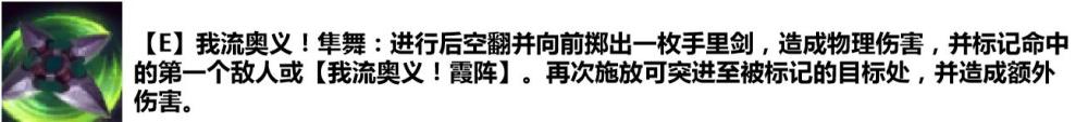 Èý¼¶µã³öE¼¼ÄÜ£¬E¼¼ÄÜÊǰ¢¿¨ÀöµÄÎ»ÒÆ¼¼ÄÜ¡£EQÃëÀ»·£º¶ÔÏß³¤Êֵij£Óü¼ÇÉ£¬ÐèÒª¶Ô¾àÀëµÄ°Ñ¿Ø·Ç³£¾«×¼¡£·´ÏòEQÃüÖеÐÈ˺ó¿ÉÒÔÖ±½ÓÀ³ö±»¶¯£¬¶Ô·½³ý·ÇÊÇÓÐ×¼±¸ºÍÔ¤ÅУ¬·ñÔòÊÇ·´Ó¦²»¹ýÀ´µÄ£¬EQºó¿ÉÒÔÑÌÎí¼ÌÐøÀ³¶(Èç¹ûE1ÓÐÃüÖе¥Î»£¬¿ÉÒÔE2ÕÛ·µ£¬Íê³É°×æÎ)¡£