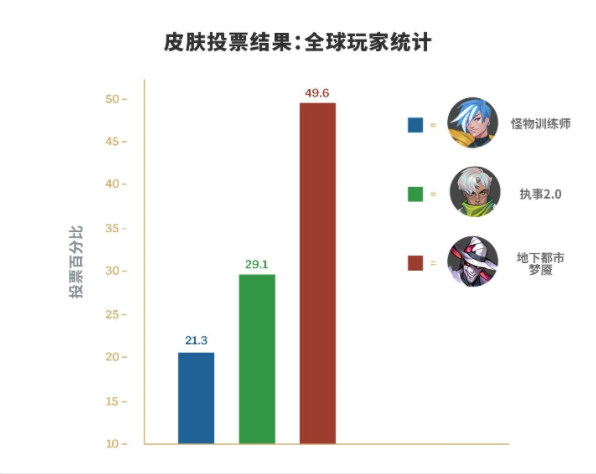 ÔÚÖ÷ÌâÆ¤·ôµÄͶƱ·½Ã棬ȫ·þÎñÆ÷ͶƱÅÅÔÚµÚÒ»µÄÊǵØÏ¶¼ÊÐÃÎ÷Ê£¬µÚ¶þÃûÊÇÖ´ÊÂ2.0£¬µÚÈýÃûÊǹÖÎïѵÁ·Ê¦¡£¶øµÚÒ»ÃûµÄµØÏ¶¼ÊеÄͶƱÂʽӽü50%£¬´ïµ½ÁË49.6%¡£µ«ÊÇÔÚ¹ú·þµÄͶƱµ±ÖУ¬Ö´ÊÂ2.0µÄÈ´ÊÇÒÔ΢ÈõµÄÓÅÊÆÅÅÔÚµÚÒ»¡£