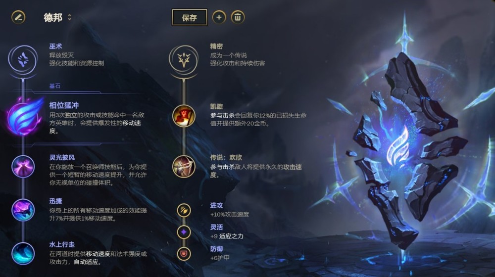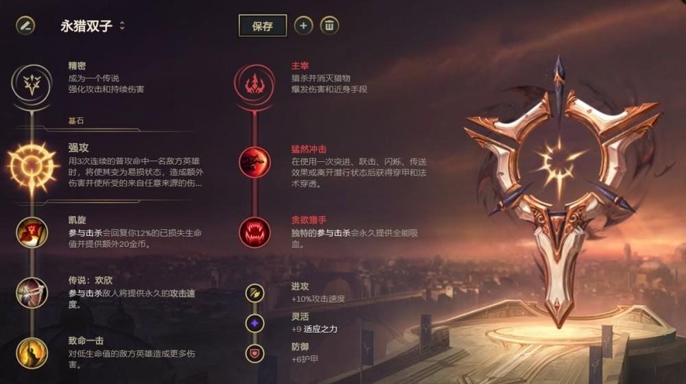 副系必点欢欣来强化刷野和输出时的攻速,搭配一个斩杀符文致命一击。