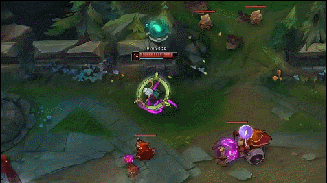 发挥小丑强大的残血斩杀能力来游走三路带动击杀节奏,同时快速发育出到挺进者,挺进者的优势是可以单人击杀灵活度高的敌人,Q一段接近,E减速再加上一段挺进者。6级之后可灵活利用分身来打团,分身爆炸后的控场效果很好,危险的时候还可以用来保命。