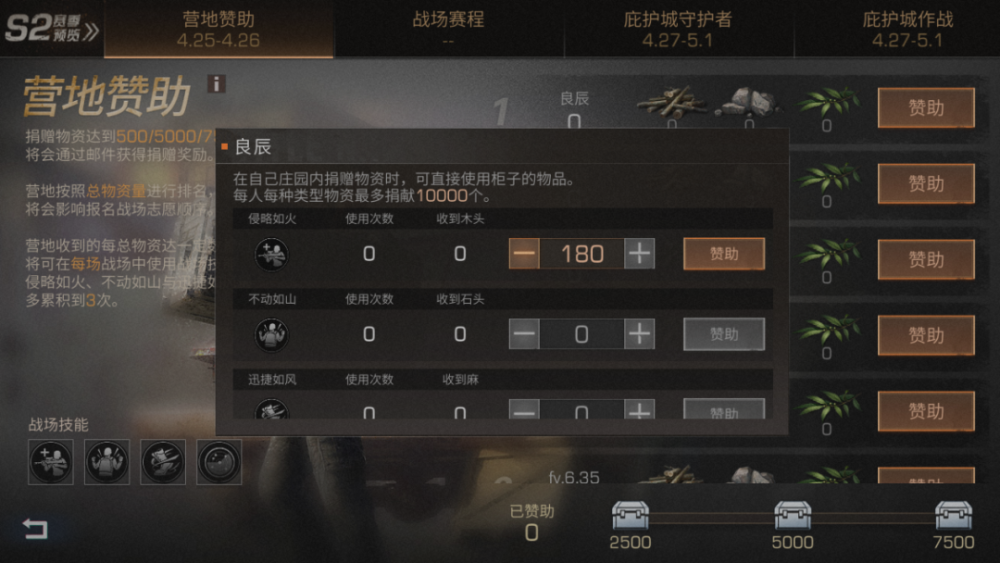 ÓªµØÔÞÖú---ÐÒ´æÕßÔÞÖú½±Àø£ºÔÚ2021.4.25 3:00~4.26 3:00²É¼¯¡¢ÖÆ×÷¡¢Õ½¶·µÈ¼¶¾ù´ïµ½15ÒÔÉϵÄÐÒ´æÕßÃǿɶԲÎÈüÓªµØ½øÐÐÔÞÖú£¬ÔÞÖúÎï×ʰüÀ¨Ê÷ľ¡¢Ê¯Í·¡¢Â飬ÿÈËÿÖÖÀàÐÍÎï×Ê×î¶à¾èÔù10000¸ö¡£