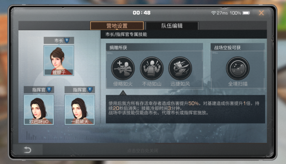 Êг¤¡¢´úÀíÊг¤¡¢Ö¸»Ó¹Ù¿ÉÒÔ¸øÓè×÷Õ½³ÉÔ±×÷Õ½»ù½¨½¨ÔìȨÏÞ£¬Ò²¿ÉÒÔÑ¡ÔñʹÓÃÕ½³¡¼¼ÄܵÄʱ»ú¡£
