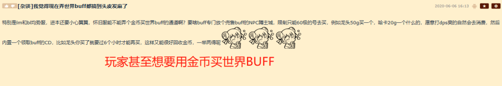 ÕâÆªÌû×ÓÒ»³öÒýÆðÁ˹㷺µÄÌÖÂÛ£¬ÓеÄÍæ¼Ò¼á³ÖÈÏΪÊÀ½çBUFFÊǺÏÀíµÄ£¬¿¼ºËÒ²ÊǺÏÀíµÄ£»µ«´ó²¿·ÖÍæ¼Ò»¹ÊǶÔÊÀ½çBUFF²úÉúÁËÖÊÒÉ£¬ÒòÎªÖ»ÒªÍæ¹ý»³¾É·þµÄÈ˶¼ÖªµÀ£¬ÊÀ½çBUFFÔÚ»³¾É·þ¾ÍÊÇÊä³öµÄ±£Ö¤£¬ËüÇ¿Á¦µÄЧ¹ûÎãÓ¹ÖÃÒÉ¡£