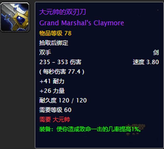 ´óԪ˧µÄË«Èе¶£ºÎïÆ·µÈ¼¶78 Ë«ÊÖ½£235-353É˺¦£¨Ã¿ÃëÉ˺¦77.4£©ËÙ¶È3.8 +41ÄÍÁ¦+26Á¦Á¿ ×°±¸£ºÊ¹ÄãÔì³ÉÖÂÃüÒ»»÷µÄ¼¸ÂÊÌá¸ß1%