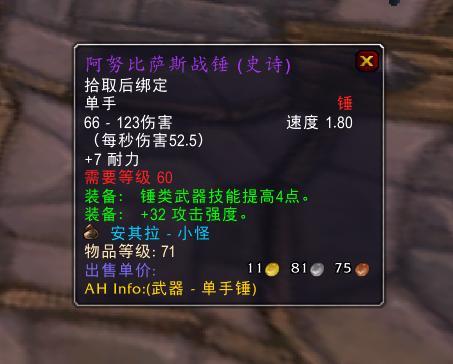 ¡°°¢Å¬Õ½´¸¡±Êǰ²ÆäÀС¹ÖµôÂäµÄÒ»°Ñ¼«Æ·ÎäÆ÷£¬ÃûΪ°¢Å¬±ÈÈøË¹Õ½´¸£¬ÊǽüÕ½ÎïÀíϵ±È½ÏÇÀÊÖµÄÒ»°ÑÎäÆ÷¡£±ÊÕß֮ǰ¸ú¹ýÉùÍûÍÅ£¬´òÁ˽ü5¸öСʱ£¬Ò²Ã»ÓгöÒ»°Ñ¡°°¢Å¬Õ½´¸¡±¡£µ±Ê±¶ÓÀïÓÐÍæ¼Ò°üÁËÕâ°ÑÎäÆ÷£¬¼Û¸ñÊÇ1.2Íò½ð±Ò£¬Õâ²ÅÊÇÉÏÖÜ·¢ÉúµÄÊÂÇé¡£¡°°¢Å¬Õ½´¸¡±ÒòΪ¹¥Ëٿ죬ÓÖÓд¸ÀàÎäÆ÷¼¼ÄܼÓ4µã£¬Ôì¾ÍÁËËü¸ß°ºµÄÉí¼Û¡£