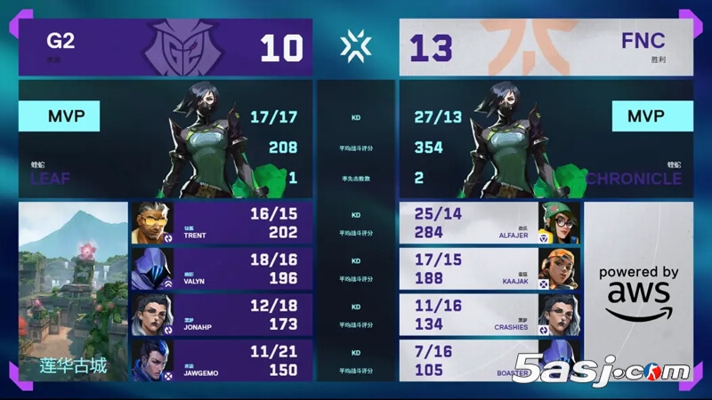关键回合:第4回合valyn的1v3残局为G2建立心理优势,但FNC通过第21回合Alfajer三杀完成局势逆转