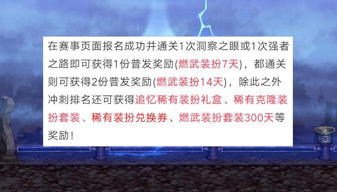 ×ܶøÑÔÖ®£¬¶ÔÒ»°ãµÄÍæ¼ÒÀ´Ëµ£¬±¨ÁËÃûÖ®ºó£¬²»Òª¾À½áʱ¼ä£¬Ëæ±ãͨ¹Ø¶´²ìÖ®ÑÛºÍÇ¿Õß֮·£¬°Ñ14ÌìµÄȼÎäÖ®ÐÄ×°°çÄõ½ÊÖ¾ÍÐС£²»ÊÇÓÀ¾ÃµÄȼÎä×°°ç£¬Ö»Äܹ»´©´÷Á½ÐÇÆÚ£¬Ò²ËãÊÇÔ²ÃÎÁËÒź¶£¡
