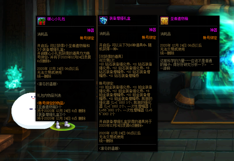 ůÐÄСÀñ°ü´ò¿ª¿ÉÒÔ»ñµÃ1¸öÊ¥ÕßÒÅÎïÏ䣬Ҳ¾ÍÊDz»ÐèÒª¹ºÂòÔ¿³×Ö±½Ó¿ÉÒÔ´ò¿ªµÄ¸ß¼¶Ä§ºÐ£¬ÒòΪ¹ºÂòÒ»Ì×ÐèÒª500µãȯ£¬ËùÒÔÕâÒ»¸öËãÏÂÀ´ÓÐÒ»¶¨µÄÐԼ۱ȣ¬µ±È»´ó²¿·Ö¶¼ÊÇ¿ª³öB¼¶½±Àø£¬ËùÒÔ¿´¸öÈ˵ÄÔËÆø¾ö¶¨ÁË¡£´ËÍ⻹ÄÜ»ñµÃÒ»¸ö×°±¸ÔöÇ¿ÀñºÐ£¬´ò¿ª¿ÉÒÔËæ»ú»ñµÃ¿É½»Ò×»òÕßÕʺŰ󶨵ÄÔö·ùÇ¿»¯È¯£¬¶øµÍ±£½±Àø¾ÍÊÇ1-2¸öÇ¿»¯Æ÷»òÕßÔö·ùÆ÷£¬Òò´ËÕâÒ»¸öÀñºÐ˵ůÐÄ£¬¿´ÆðÀ´È´ÈÃÎҸе½·ÇÇõµÄÀä¡£