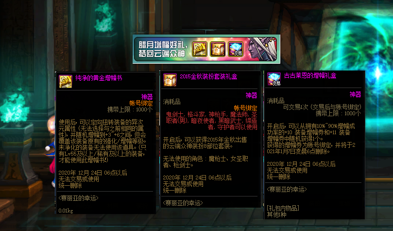 Æä´ÎÊÇħºÐ¸üмÓÈëÁËеÀ¾ß£¬ÕâÒ»´Î¼ÓÈëÁËÕʺŰ󶨵ĻƽðÔö·ùÊé¡¢2015ÄêµÄ¹úÇìÌ×»¹ÓйŹÅÀ³¶÷µÄÔö·ùÀñºÐ£¬ÕâЩµÀ¾ß¾ÍûÓÐÏêϸ½éÉܵļÛÖµÁË£¬Ö÷Ҫ˵һϽðÇï×°°ç¡£
