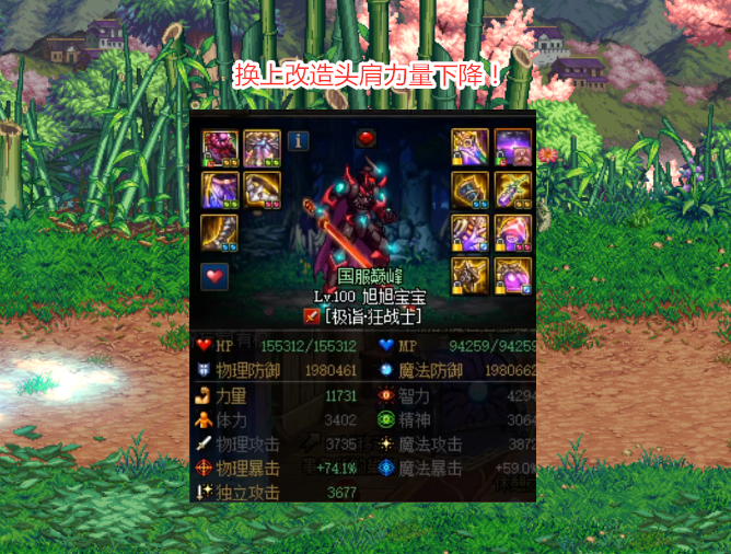 µ±È»£¬±¦¸çÔÚ´ò׮ʱ£¬»»ÉÏÁ˸Ä8Í·¼ç£¬Õâ²ÅÉ˺¦»á¸ßЩ¡£Ö»ÊÇ£¬Ãæ°å»áϽµ£¬ÎÞ·¨Í»ÆÆ1.2W²ã´Î¡£¸ÄÔìSS´ÊÌõ¸øÁ¦£¬·´¶øºöÂÔÁËÅÅÃæ£¬µ«¶Ô±¦¸ç¶øÑÔ²»ÔÚºõ£¬ºìÑÛÁ¦Á¿ÒѾ̫¸ß£¡Æäʵ£¬ÐñÐñ±¦±¦µÄÔö·ù֮·£¬»¹²¢Ã»ÓнáÊø£¬È«ÉíÔö·ù17δȫ²¿´ï³É£¬×÷ΪǿÆÈÖ¢Ò»Ô±£¬ÕâÒ»µã¿Ï¶¨²»Ô¸¿´¼û£¡