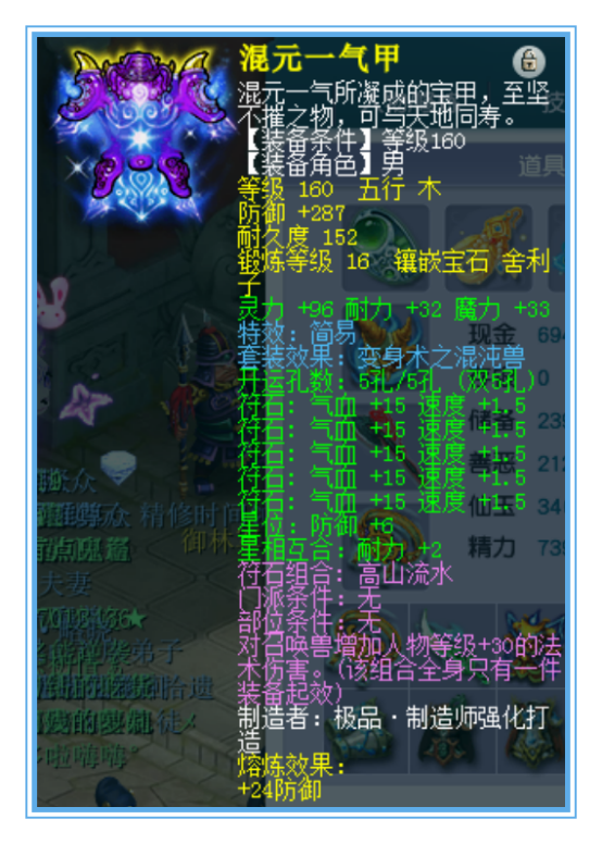 160¼¶¼òÒ×îø¼×£¬¶Íµ½ÁË16¼¶ÉáÀû×Ó£¬·ÀÓù¼Ó311£¬ÄÍÁ¦¼Ó32£¬Ä§Á¦¼Ó33¡£Õâ¼þÒ·þµÄÊôÐÔÒ²Ï൱¼«ÏÞ£¬Ë«¼Ó¸ß´ï65£¬Ïà½ÏÓÚ150¼¶µÄÒ·þÀ´Ëµ²î9µã·ÀÓù´ïµ½Âú·À¡£