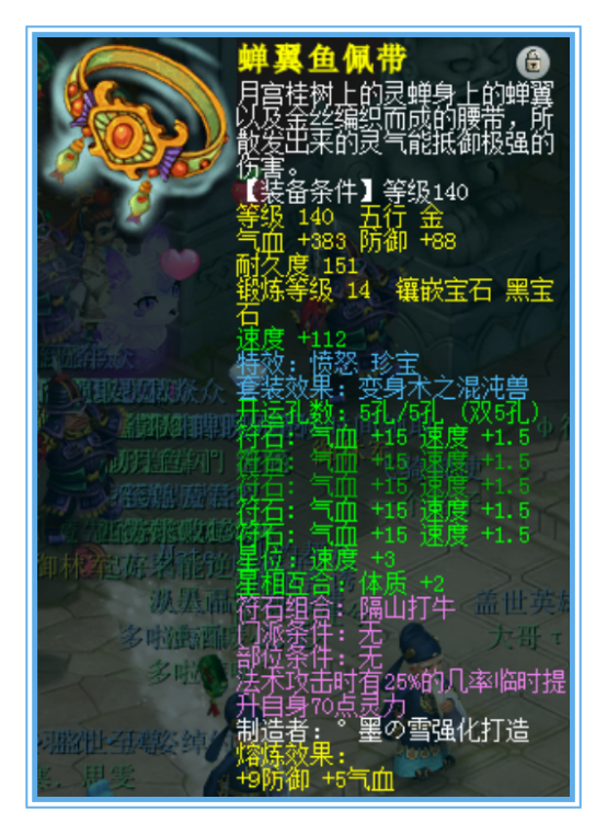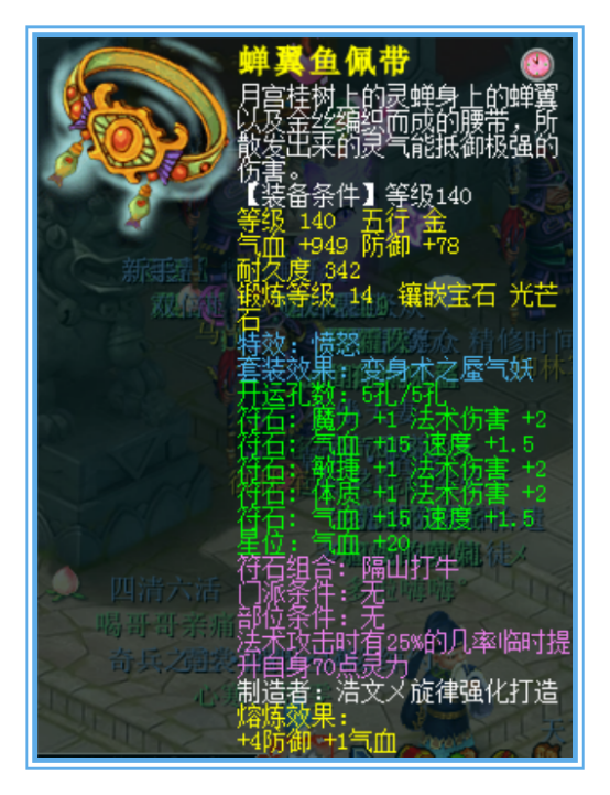 140¼¶·ßÅÑü´ø£¬¶Íµ½ÁË14¼¶ºÚ±¦Ê¯£¬·ÀÓù¼Ó97£¬ÆøÑª¼Ó388¡£ÕâÌõÑü´øµÄÊôÐԺܸøÁ¦£¬Ñª¸ß¡¢·À¸ß£¬ÔÙ¼ÓÉϱäÉíÌØÐ§£¬·Ç³£ÍêÃÀ¡£