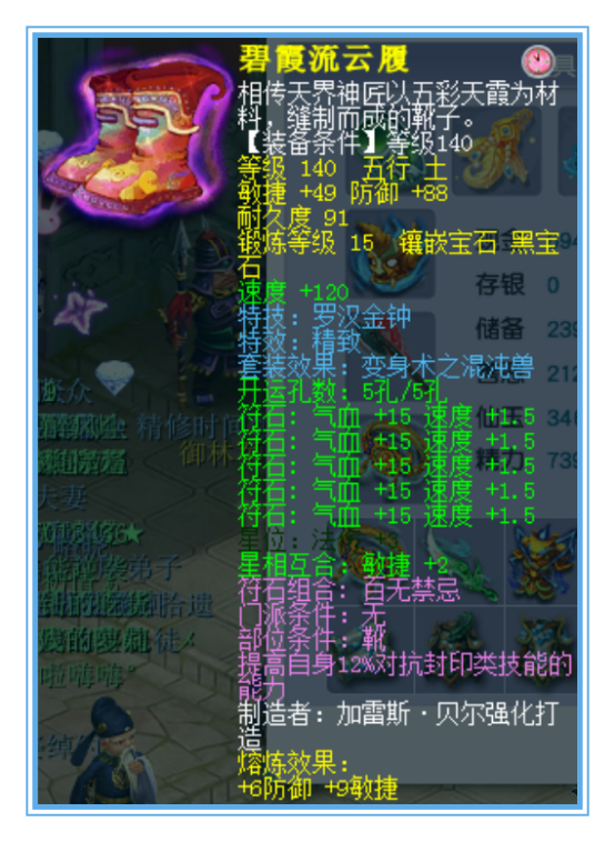 140¼¶¾«Ö¡¢ÂÞººÐ¬×Ó£¬¶Íµ½ÁË15¼¶ºÚ±¦Ê¯£¬·ÀÓù¼Ó94£¬Ãô½Ý¼Ó58¡£¸ßÊôÐÔ¡¢¾«Ö¼Ó15¶Í£¬ÎÒÃÇ¿ÉÒÔ°ÑËüµ±×ö150¼¶µÄÂÞººÐ¬×Ó¡£