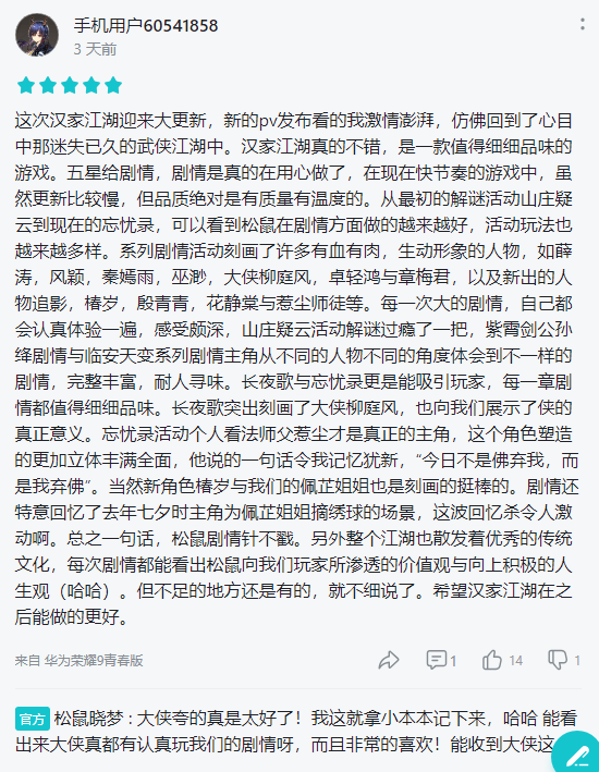 еÄPV·¢²¼¿´µÃÎÒ¼¤ÇéÅìÅÈ£¬·Â·ð»Øµ½ÁËÐÄÖÐÄÇÃÜÊÒÒÀ¾ÉµÄÎäÏÀ½ºþÖÐ--À´×ÔһλӵÓнºþÃεÄÍøÓÑµÄÆÀ¼Û¡£Ïà±ÈÓÚÆäËûµÄÎäÏÀÓÎÏ·ºº¼Ò½ºþÕæµÄÊÇÒ»¿îÄܹ»¸øÈË´¿ÕýµÄ½ºþÌåÑéµÄÓÎÏ·£¬¾çÇé·½Ãæ×öµ½½üºõÍêÃÀ£¬Ã¿¸öÈËÎï¶¼ÓÐѪÓÐÈâ¡¢Éú¶¯ÐÎÏó¡£¾ÍÏñÕâÎ»Íæ¼ÒÒ»Ñù£¬ÔÚºº¼Ò½ºþµÄÌåÑéÖÐÄܹ»¼Çסÿһ¸ö½ÇÉ«ºÍ¾çÇ飬·Â·ðÌåÑéÁ˲»Í¬µÄÈËÉú£¬Ô²Á˴󲿷ÖÎäÏÀÃԵĽºþÃΣ¡