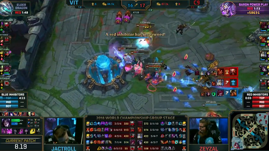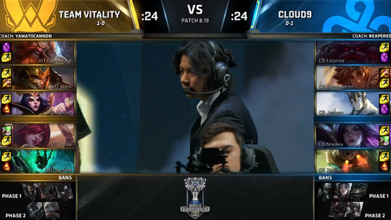 ¡¡¡¡2018Äê10ÔÂ11ÈÕ£¬Ó¢ÐÛÁªÃËS8È«Çò×ܾöÈü½øÈëС×éÈüµÚ¶þÈÕ£¬EULCS¶þºÅÖÖ×ÓTeam Vitality¶ÔÉÏNALCSÈýºÅÖÖ×ÓCloud9¡£