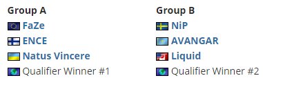 ÕðÖб2018С×éÈü·Ö×éÍê³É£¬°ËÖ§¶ÓÎé·ÖΪA¡¢B×飬FaZeºÍNaViͬÔÚA×é¡£