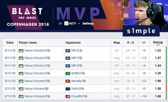 ¡¡¡¡s1mple±»HLTV¼°betwayÁªºÏÆÀΪBLAST ¸ç±¾¹þ¸ùÕ¾×îÓмÛֵѡÊÖ£¬¼´MVP¡£