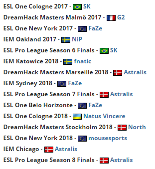 ³ýÁËAstralisÓëFaZeÒÔÍ⣬»¹ÓÐÆßÖ§¶ÓÎéÓ®µÃÁË´óÂú¹áϵÁÐÈüʵĹھü£ºG2£¬SK£¨ÏÖΪMiBR£©£¬NiP£¬fnatic£¬North£¬NaViÒÔ¼°mousesports£¬µ«Ö»ÓÐNaViÏÖÔÚά³ÖÁ˶á¹ÚʱµÄÕóÈÝ¡£