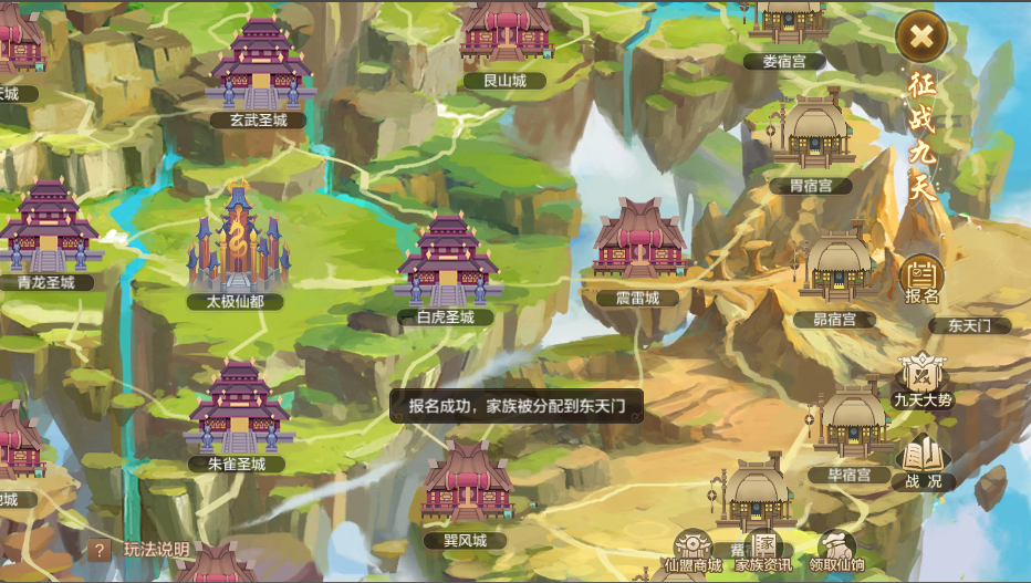 ±¨ÃûÖ®ºó£¬¼Ò×å½«Ëæ»ú·ÖÅäµ½¶«¡¢ÄÏ¡¢Î÷¡¢±±ËĸöÌìÃÅ×÷Ϊ³õʼ¸ù¾ÝµØ£¬»ÃÏë¼ÒÃÇÕ÷Õ½¾ÅÌìµÄÕ÷;¾Í´Ó´Ë¿ªÊ¼¿©£¡