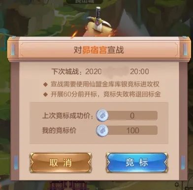 ÔÚÿ¸öÕ½ÇøÕù°ÔÖܵÄÖÜÒ»¡¢Èý¡¢ÎåµÄÍíÉÏ20£º00½«»á¾Ù°ì³ÇÕ½¡£´Ó³ÇÕ½ÈÕÁ½ÌìǰµÄ21:00¿ªÊ¼×峤¡¢¸±×峤¿ÉÒÔ¶ÔÏëÒª½ø¹¥µÄ³Ç³ØÐûÕ½£¬¾º±ê½ø¹¥È¨£¬¾º±êʱ»á´Ó¿âÒøÖп۳ý¶ÔÓ¦µÄ±ê½ðÓ´~