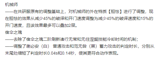 ¹Ù·½ÕâÒ»´Î¸Ä¶¯Á¬Ðø¿³ÁËËÞɡ֮»êÁ½µ¶£¬ÆäÒ»¾ÍÊÇÔÚËÞɡ֮»ê½âËø¶þ½×¼¼ÄܵÄʱºò£¬½«ÎÞ·¨ÔÙË¢ÐÂÀäÈ´ÖеÄÒ»¼¼ÄÜ£»Æä¶þ¾ÍÊÇÏ÷¼õÁËл±Ø°²µÄÆÕ¹¥Åж¨Ê±³¤ÒÔ¼°·¶ÎÞ÷ÙµÄÐîÁ¦¹¥»÷ʱ³¤£¬·Ö±ðΪ0.04sÒ»¼¶0.14s£¬Ê¹µÃÑÓ³ÙÃüÖÐʱ¼ä±äµÃ¸ü¶Ì¡£