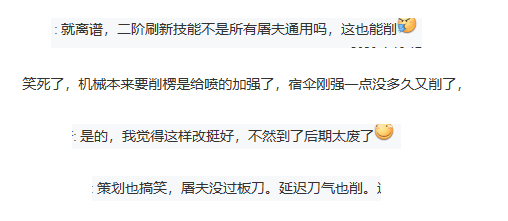 ÕâÁ½Ïîµ÷Õû¶¼Êܵ½ÁËÍæ¼ÒÃǵÄÈÈÒ飬ÆäÖжþ½×¼¼ÄܽâËøµÄ˲¼äË¢ÐÂÒ»¼¼ÄܵÄÀäȴʱ¼äµÄЧ¹û£¬ÆäʵÊǴ󲿷ÖÍÀ·òµÄ¹²ÓÐÌØÐÔ£¬É¡»ê×÷ÎªÌØÀýÁгö¾ÍÊÇÃ÷ÏÔµÄÏ÷Èõ¡£ÓÈÆäÊÇËÞɡ֮»ê¼¼ÄÜÀäȴʱ¼ä²»¶Ï£¬ÕâÑùµÄ¸Ä¶¯¶ÔÓÚËÞɡ֮»êÀ´Ëµ´ò»÷ºÜ´ó£»¶øÑÓ³Ùµ¶ÆøµÄʱ¼äÏ÷¼õ×ÔÈ»Òâζ×ÅËÞÉ¡ÃüÖÐÂʵÄϽµ£¬ÓÈÆäÊǺÚÉ¡0.14sµÄµ¶ÆøÊ±¼äÏ÷¼õ£¬ÍùÍù¾Í»áÔì³ÉÇóÉúÕß¼«ÏÞ¶ãµ¶µÄ½á¹û¡£