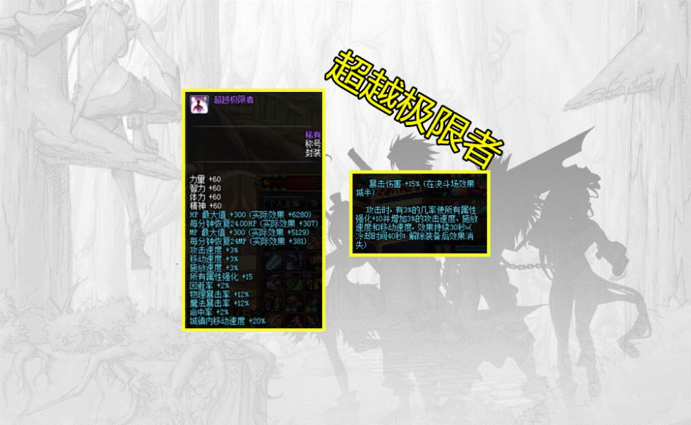 ¡¾¾ßÌåÊôÐÔ¡¿£º60ËÄά£¬15ÊôÇ¿£¬15%±©»÷É˺¦£¬¿É´¥·¢10ÊôÇ¿¡£