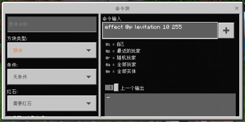 ÔÚÕâ¸öÃüÁîÖÐeffectÊǸ³ÓèµÄÒâ˼@pÊÇ×î½üµÄÍæ¼Ò£¬ÓиöС³£Ê¶@aÖ¸ËùÓÐÍæ¼Ò£¬@sÊÇÖ¸×Ô¼º£¬@eÊÇÖ¸ËùÓÐÉúÎǧÍò²»ÒªÊä´í£¬²»È»¿ÓÁË×Ô¼º¡£LevitationÊÇָƯ¸¡Ð§¹û£¬ÕâÀﻹ¿ÉÒÔËæ±ã»»³É±ðµÄЧ¹û¡£