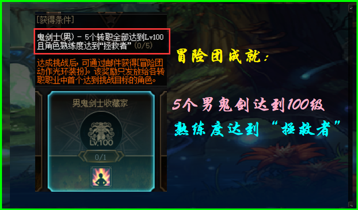 ¡¾ÄÐ¹í½£Ê¿Êղؼҡ¿£ºÐèÒª5¸öÄÐ¹í½£È«¶¼´ïµ½100¼¶£¬ÇÒ½ÇÉ«ÊìÁ·¶È´ïµ½¡°Õü¾ÈÕß¡±¡£