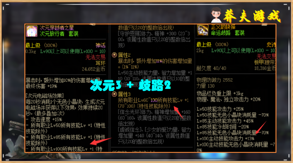 ¡¾2¡¢Æç·2¼þÌס¿£ºÍ·¼çºÍÑü´ø²¿Î»Ñ¡ÔñÆç·2£¬ÆäʵºÍ³£¹æµÄÑ¡ÔñÓÐЩ²»Ò»Ñù£¬Èç¹û×·ÇóÕûÌå¼¼ÄÜÉ˺¦£¬ÄÇôÁúѪ2¡¢´ó×ÔÈ»2»á¸üʤһ³ï£¬µ«ÕâÀïÎÒÃÇ×·ÇóµÄÊǼ«ÏÞ¾õÐÑÉ˺¦£¬ËùÒÔÆç·2·´¶øÊǸüºÃµÄÑ¡Ôñ¡£