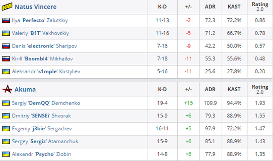 NaVi×òÌìÔÚÃæ¶ÔAkumaʱ0-2ÊäµôÁ˱ÈÈü£¬¸ù¾ÝHLTVµÄÊý¾ÝÏÔʾ£¬ÔÚ¶ÔÕóAkumaµÄͼһMirageÖÐs1mple´ò³öÁË×Ô¼ºÔÚNaViµÄ×îµÍµ¥Í¼rating¡ª¡ª0.20¡£