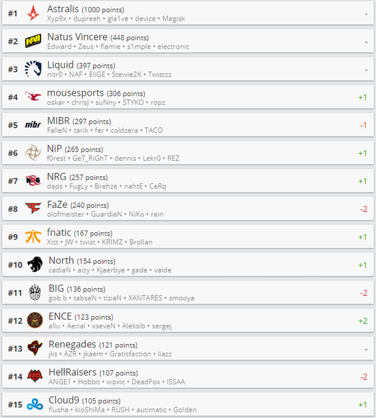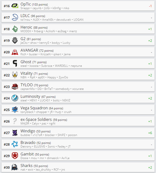 ¡¡¡¡µ«½üÆÚ¼¸Ö§Õ½¶Ó´¦ÓÚת»á»îÔ¾½×¶Î£¬VP ¸üÊǽøÐÐÁ˽ϴó·ù¶ÈµÄ±äÕó£¬FaZe Ò²ÌßµôÁË´ó±í¸çµ«³Ù³ÙûÓÐÈ·¶¨µÚÎåÈËÈËÑ¡£¬ËùÒÔÕâÁ½Ö§¶ÓÎéÅÅÃûÏà¼Ì³öÏÖ²¨¶¯¡£FaZe ÓÀ´ÁËÕâÁ½ÄêÀ´µÄ×îµÍÅÅÃû£¬µÚ°ËÃû£»¶ø±äÕóǰ¾Í±íÏÖ²»¼ÑµÄ VP ÔçÒѵø³öÁË TOP 30 µÄ°ñµ¥£¬±¾´Î¸üÐÂÏÔʾÒѾµ½ÁË 119 Ãû¡£
