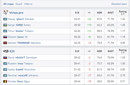 VP 2-1 K23£¨ÆúȨ 0-1£»Dust2 16-10£»Mirage 19-15£©