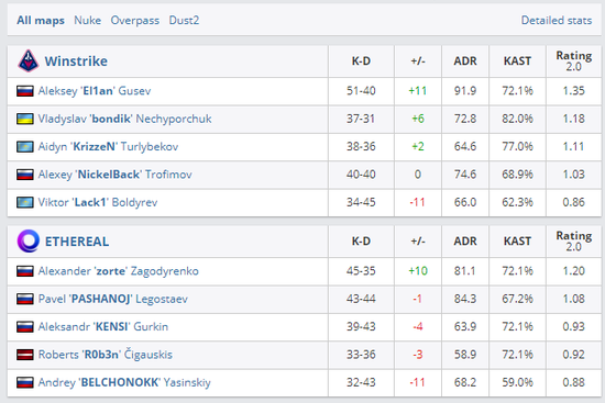 Winstrike 2-1 ETHEREAL£¨Nuke 2-16£»Overpass 16-4£»Dust2 16-7£©